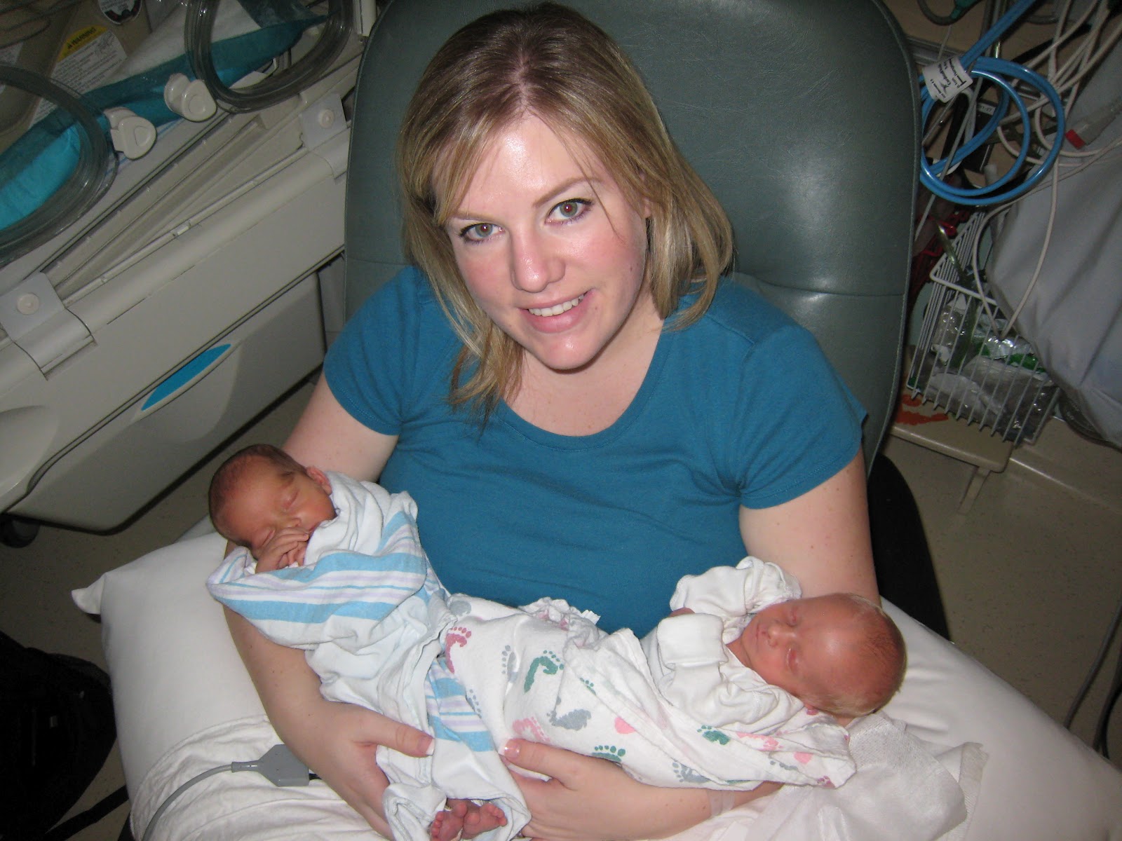 Twenty an a half hours after heading to the hospital, our twins were born, just five minutes apart. Little tiny things. Makayla was born first, just 3 pounds 9 ounces and then Austin, just 4 pounds, 9 ounces, and were swept right off to the NICU. I didn't actually get to meet my babies until a few hours latter when my epidural had worn off.